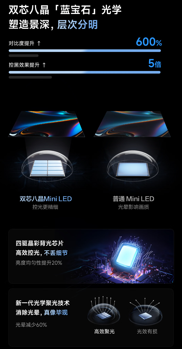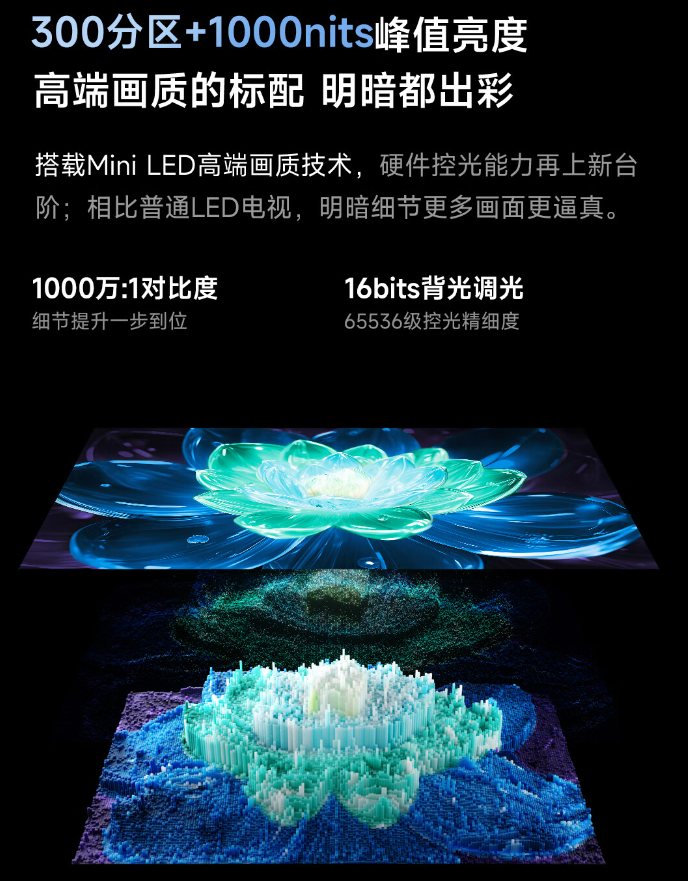 据介绍,海信 Vidda AI 电视 X Mini 拥有 55''、65''、75'' 和 85'' 四个尺寸,支持“双芯八晶 Mini LED”画质,最高拥有 300 分区控光(65'' 为 264 分区; 55'' 为 192 分区),峰值亮度 1000nit(55'' 支持 1300nits)。