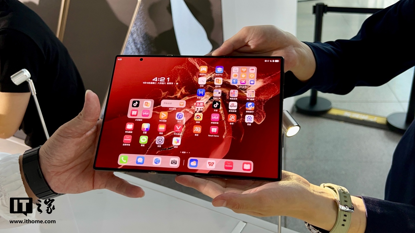IT之家 9 月 10 日消息,华为 Mate XT 非凡大师三折叠手机今日正式发布,IT之家在华为见非凡品牌盛典及鸿蒙智行新品发布会现场拍到了真机图片,带大家一睹为快。