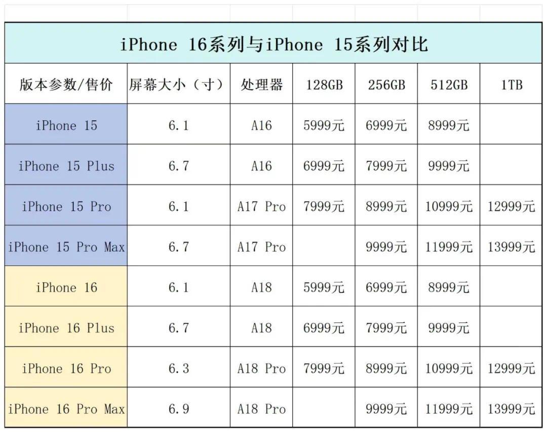 价格方面,iPhone 16系列起售价为5999元,各机型价格与上代机型一致,并未涨价。