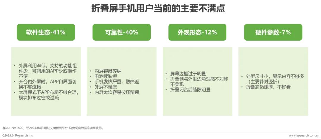 在消费者端,艾瑞咨询9月发布的报告显示,大众对于折叠屏手机的担忧主要包括软件生态、可靠性、外观形态、硬件参数四方面。