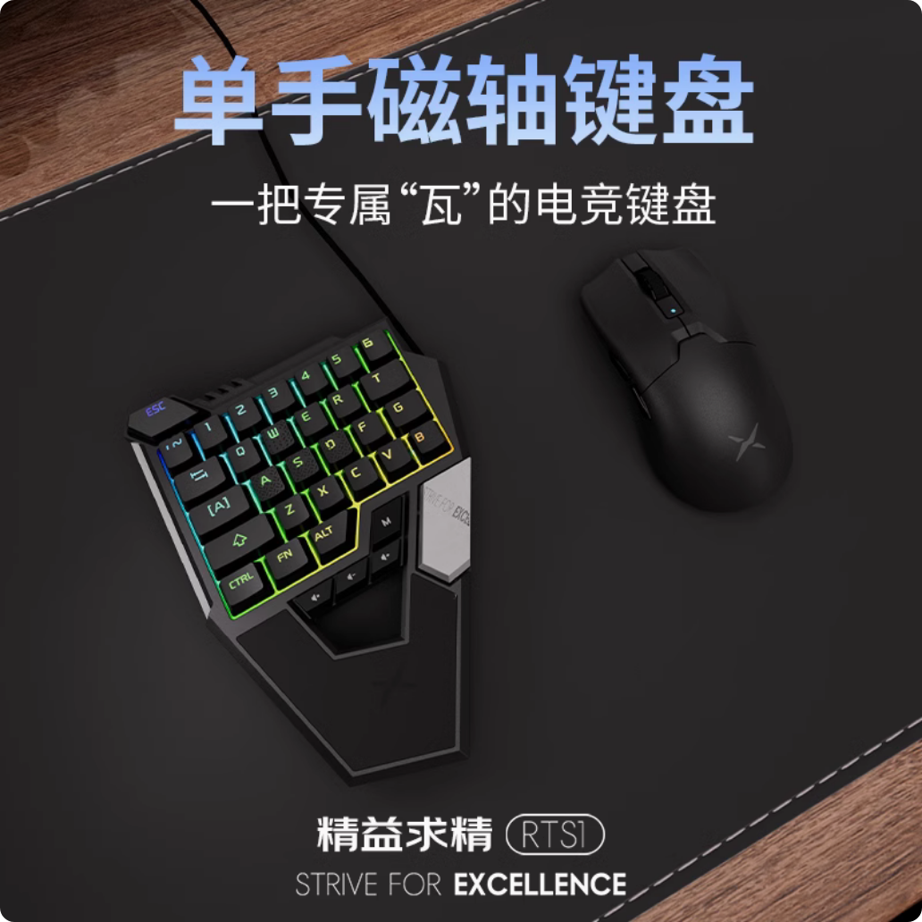 该键盘按键行程 0.1~4mm 可调,导通力度 45±10g,触底压力 60g,支持 RT,宣称“0 死区 0 断触”。此外IT之家注意到 RTS1 的 WASD 四个关键按键采用防滑纹理键帽。