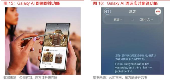 在国内,头部品牌荣耀、OPPO、vivo、小米自2023年陆续全部入局AI赛道,制定并公布了其AI战略。而作为苹果在全球市场主要竞争对手的三星,也已经推出Galaxy S24 系列,开启AI手机的新篇章。