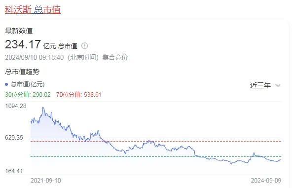 从十分勉强的增收不增利,到今年上半年收入的脸面都再也撑不住,业绩的恶化,早就反映在不断缩水的市值上:2021年7月,科沃斯的高光定格在245.62元/股,市值一度突破1500亿元;截至2024年9月9日,公司股价41.14元,总市值234亿元左右,只剩下了一成半。