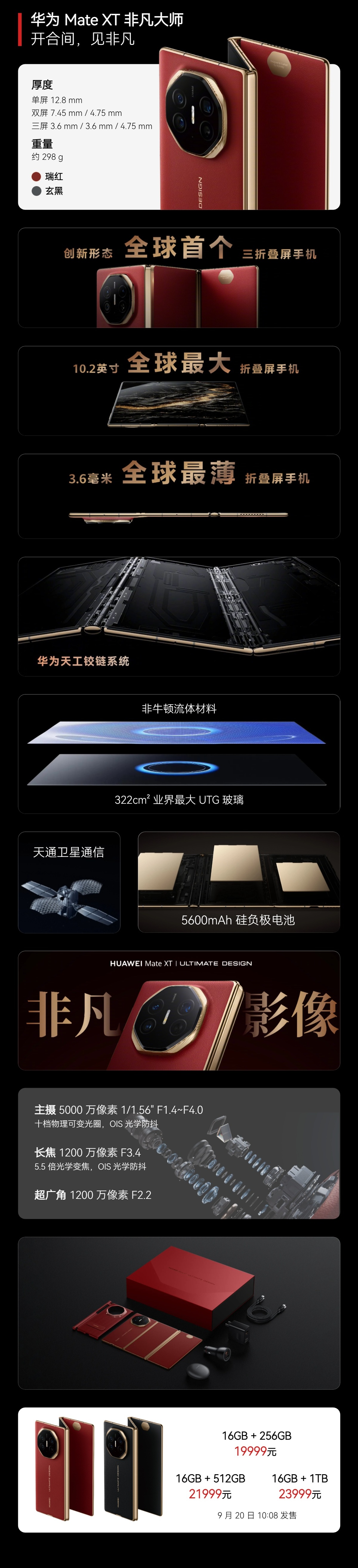 华为首款三折叠手机 —— Mate XT 非凡大师现已在京东开启预约,9 月 20 日 10:08 日开抢: