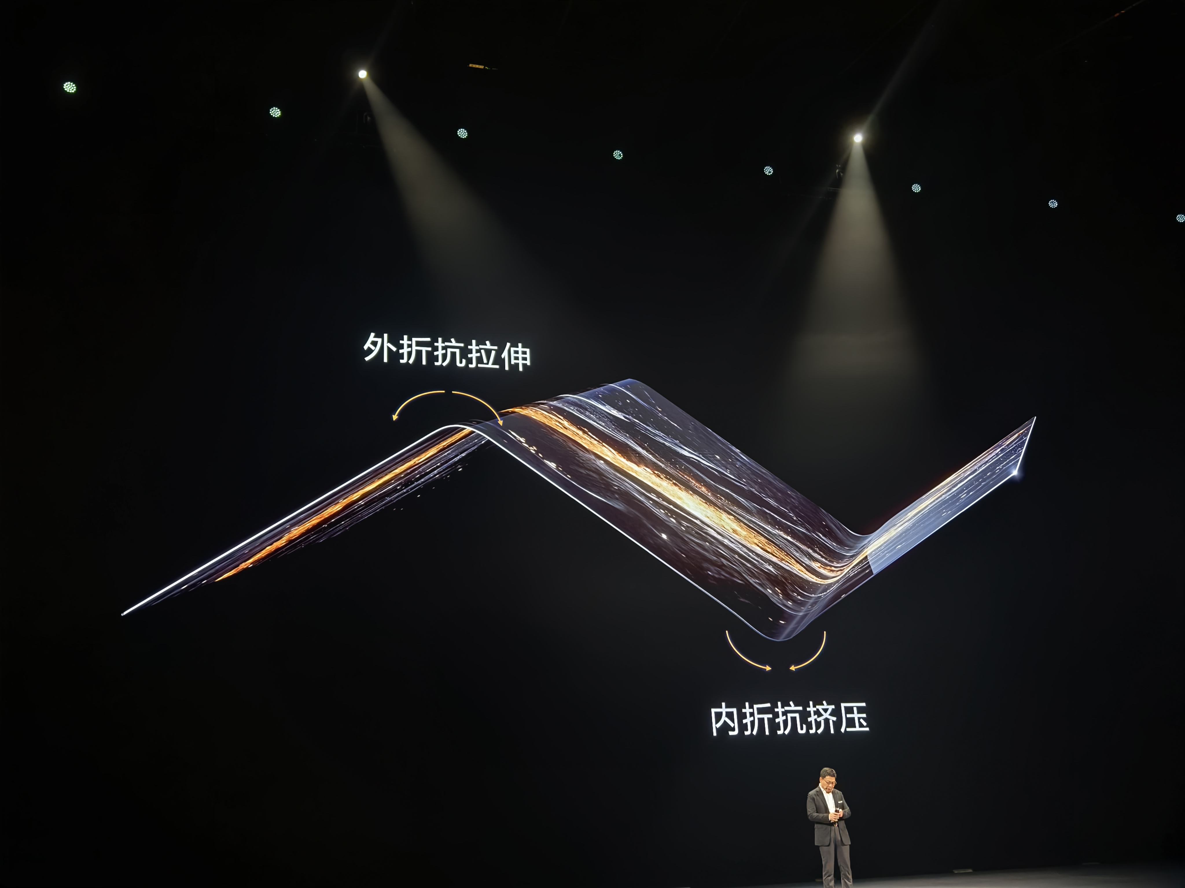 Counterpoint一位分析师告诉36氪,从发布会上看,Mate XT的铰链方案是外折搭配内折,这两个方向在折叠时天然互斥——外折的时候屏幕呈现拉伸状态,铰链需要帮助抗击拉伸,这样屏幕才不会受力过猛;而内折时候,屏幕又呈现相反的挤压状态,意味着铰链也有抗挤压。