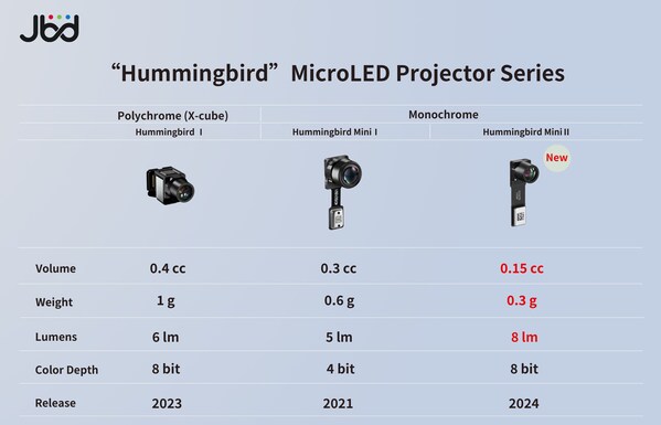 JBD"蜂鸟"光引擎拥有:基于X-cube的"蜂鸟"彩色光引擎和"蜂鸟Mini"单色光引擎,它们代表着两个不同的产品系列,家族产品也扩展至3款。随着"蜂鸟"光引擎家族阵容的不断壮大,JBD将通过丰富的产品矩阵来满足不同场景下的应用需求。