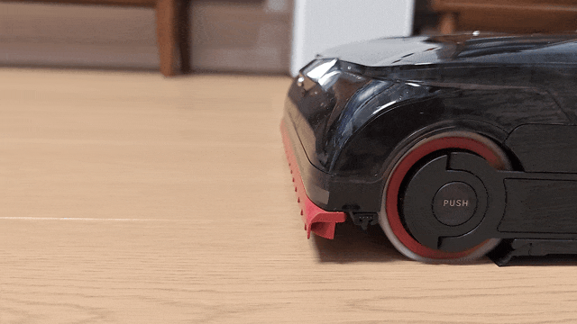 比如为了配合整机的轻薄化,同时让机器能实现更大角度的扭转、避免清洁时被家具边角“卡壳”,它特意把滚刷旁的滚轮做了定制小型化处理;再加上底部的双控轮设计,能及时根据我们推拉机器的动作做出响应,相当于多了“辅助推拉”的力。