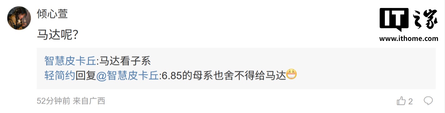 后续有用户在评论区询问:“马达呢?”,博主回复道:“马达看子系”。