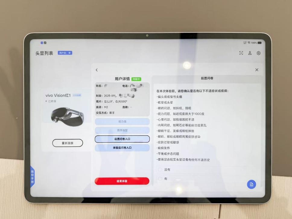 开放预约体验之后,锌刻度前往门店进行了一次实际体验。vivo线下门店设置有专门的体验区域,到店之后,店员首先会对vivo Vision的功能进行大致介绍,然后询问体验者是否近视、具体度数是多少,然后拿取相应度数的镜片进行体验。