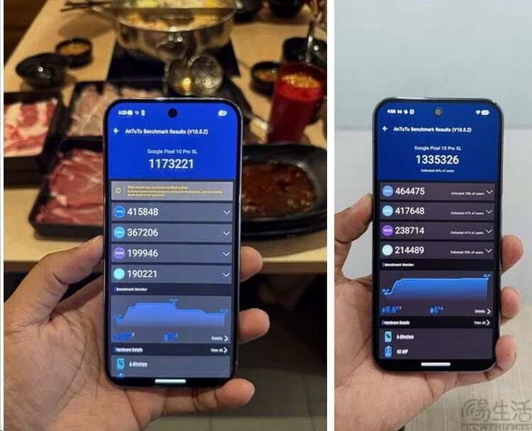 网传的Tensor G5安兔兔跑分成绩,左为刚发布时、右为近期系统更新后