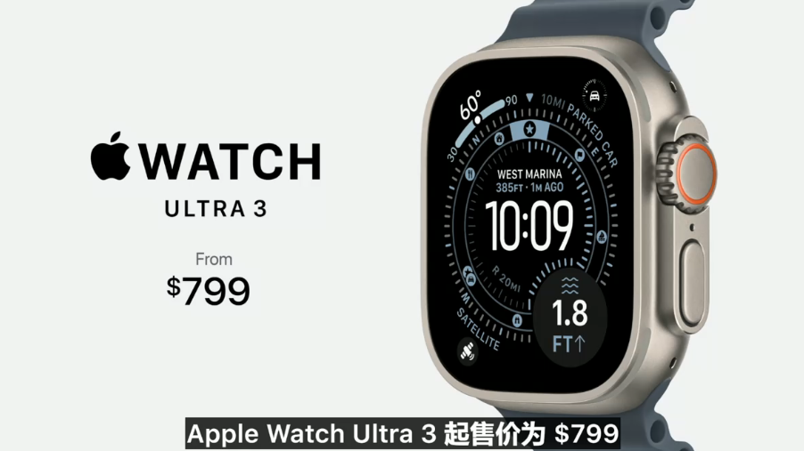 IT之家 9 月 10 日消息,苹果 Apple Watch Ultra 3 手表今日正式发布,售价 799 美元(IT之家注:现汇率约合 5695 元人民币),国行售价 6499 元起,9 月 11 日早 9 点接受预购,9 月 19 日发售。