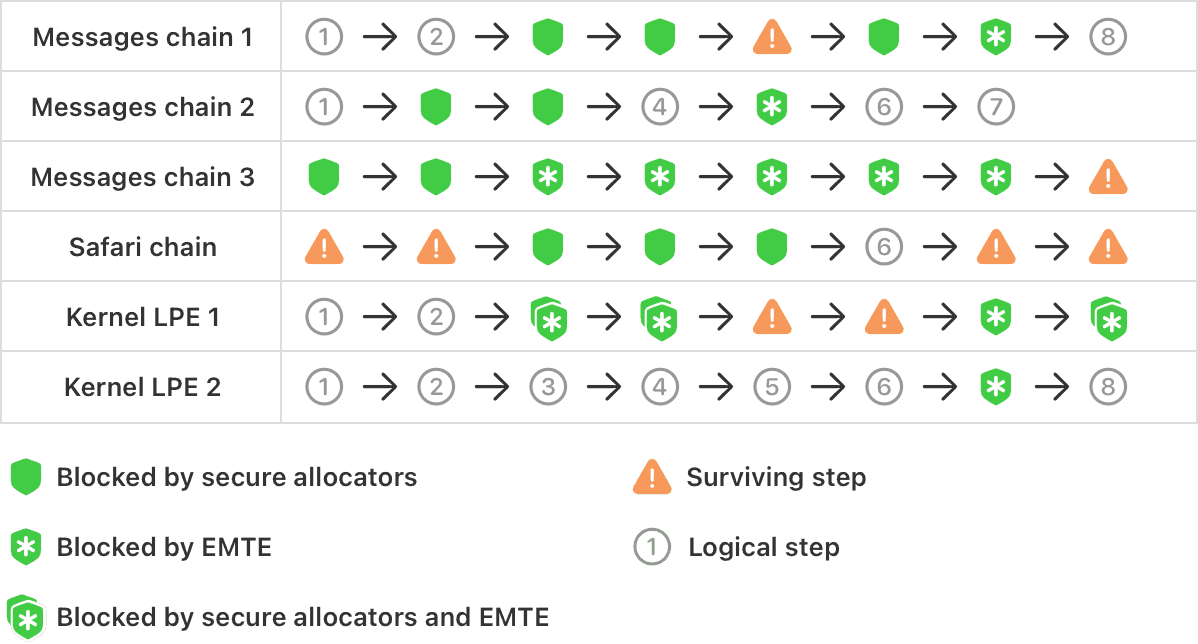 在攻击者视角下,MIE 不是消除所有漏洞,而是显著提高利用门槛,让雇佣间谍软件开发的成本与风险大幅增加。一旦攻击链中任一环节被切断,整体利用几乎无法维持,迫使攻击者从零开始。