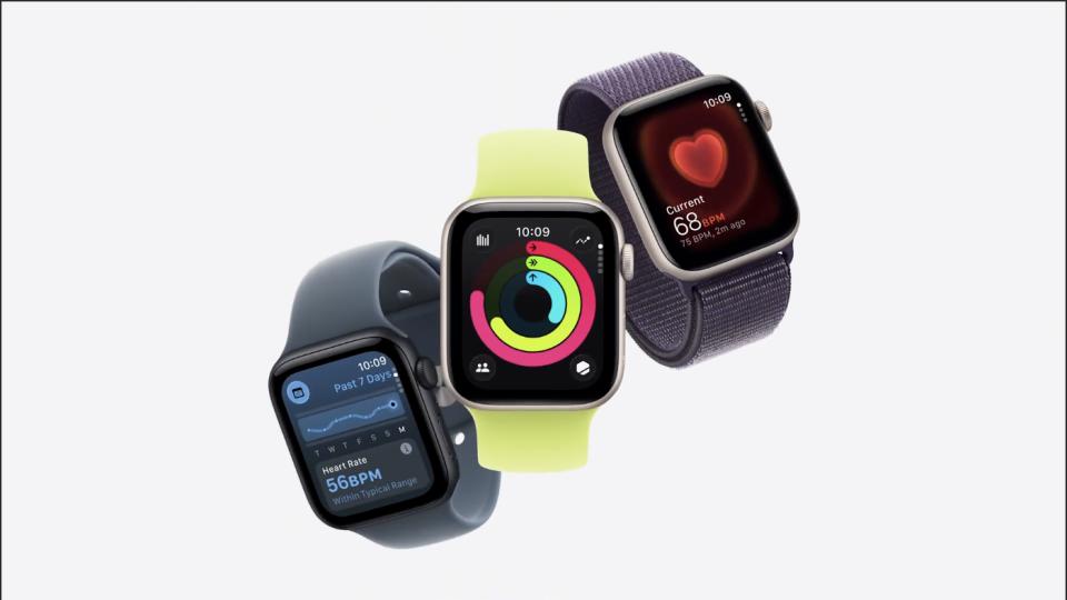 另外两款手表有的S10芯片、Always-On display、5G、2倍快充这些功能点和配置,SE 3全都有,健康方面还增加了跌倒检测和睡眠呼吸暂停检测及睡眠评分、排卵周期估算,还新增了温度测试,可通过扬声器播放音乐和播客。