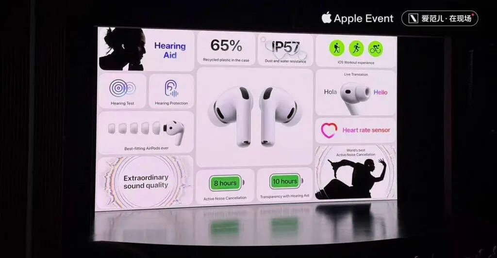 爱范儿在现场,看到 AirPods Pro 3 带头亮相时,全场都发出了「喔」的声音……