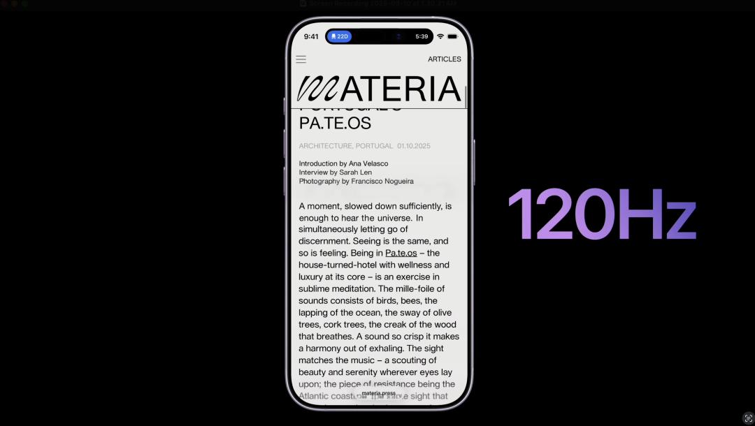 原因没别的:苹果终于「突破制裁」,在大家心心念念四年多之后,将高刷新率屏幕也给 iPhone 17 配齐了。