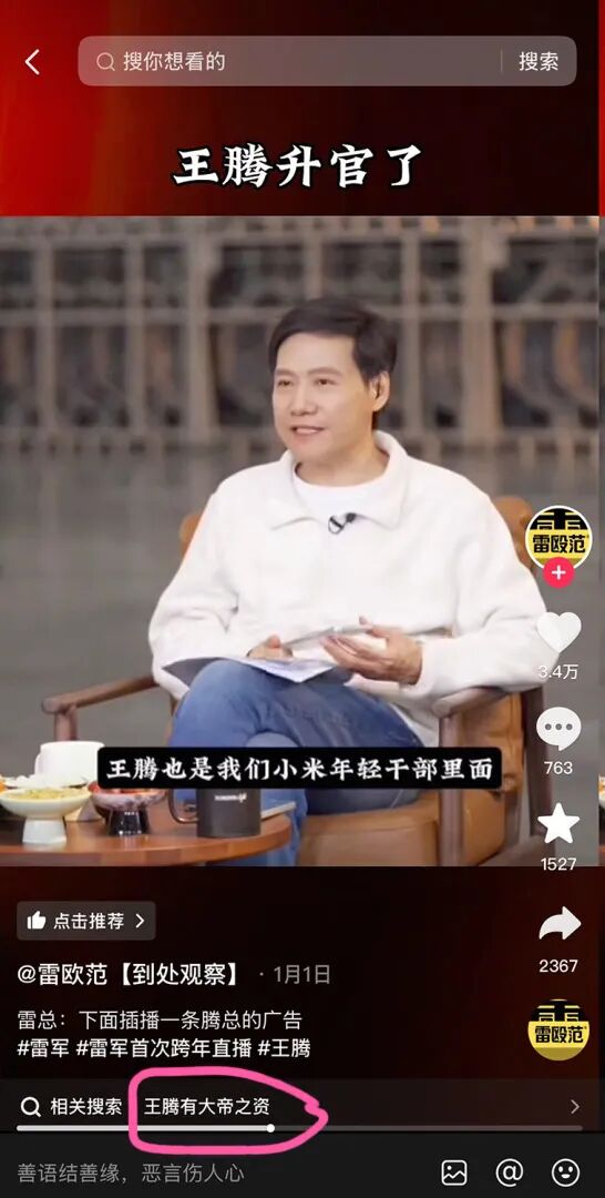 今年的跨年直播中,雷军更评价王腾是“年轻干部、六项全能、轮岗经验丰富”。