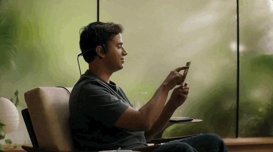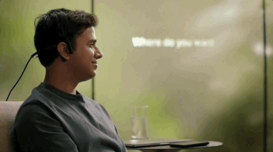 它还能通过骨传导耳机将反馈提供给用户,通过不干扰外部环境的方式直接传输到用户的耳朵里,提供完整的输入-输出交互体验。
