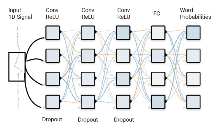 提取到的特征被输入到一个CNN网络中进行分类,一旦系统识别了静默语音,它会通过计算得到相应的输出。