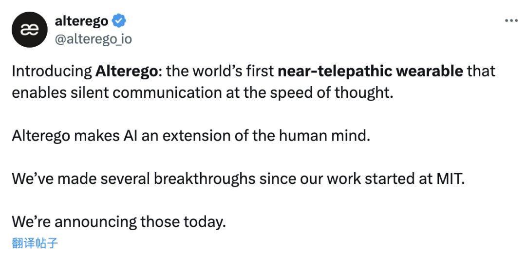 AlterEgo项目起源于2018年的MIT实验室。