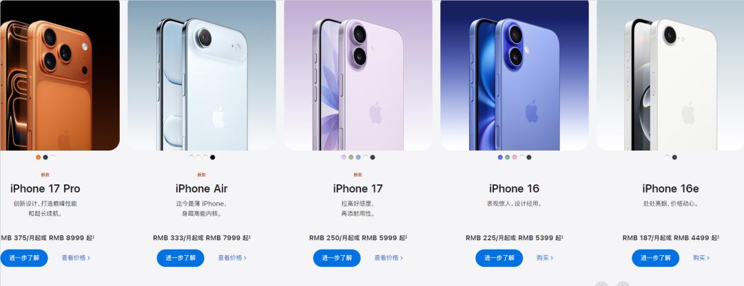 北京时间10日凌晨的新品发布会上,苹果公司推出了iPhone 17、iPhone 17 Pro以及iPhone Air等新品,定价 5999元~17999元不等 。