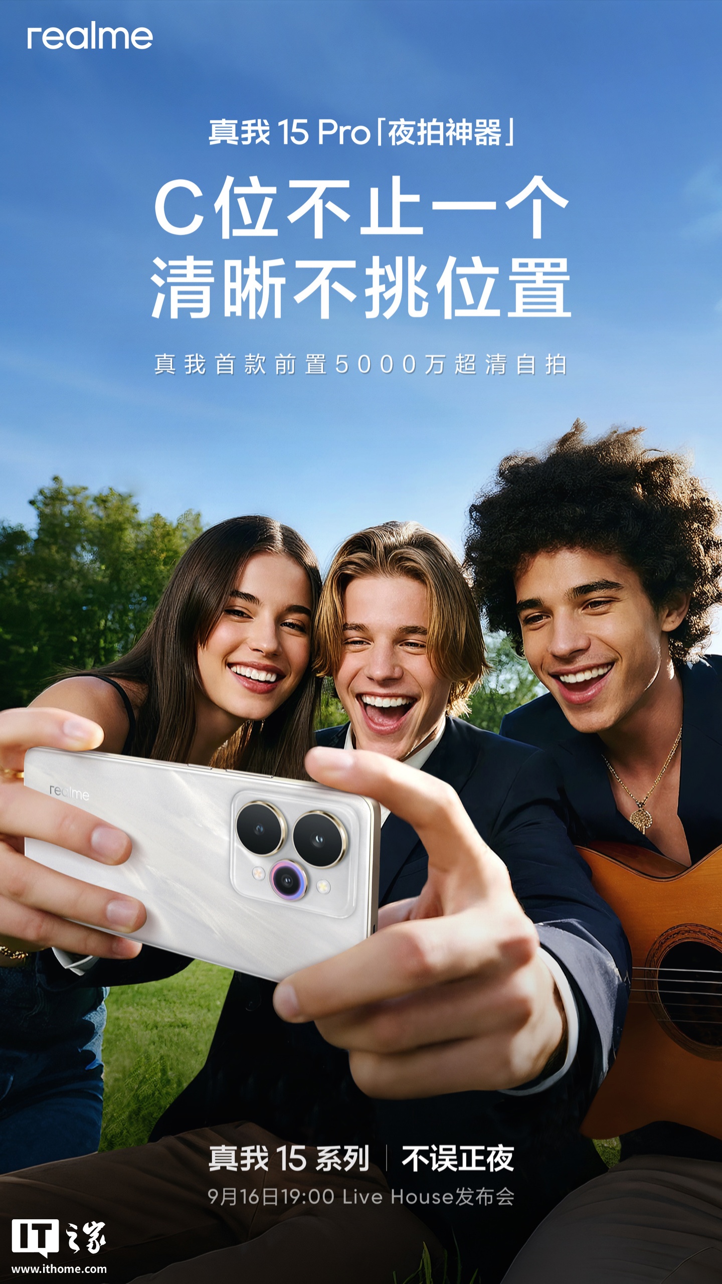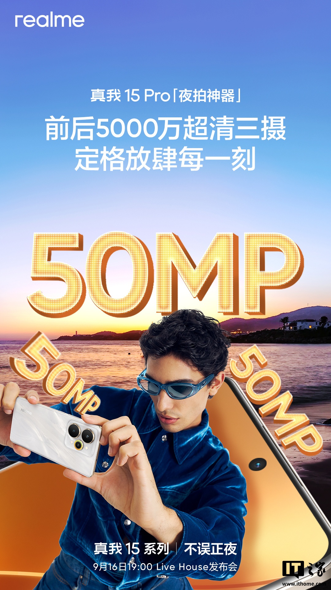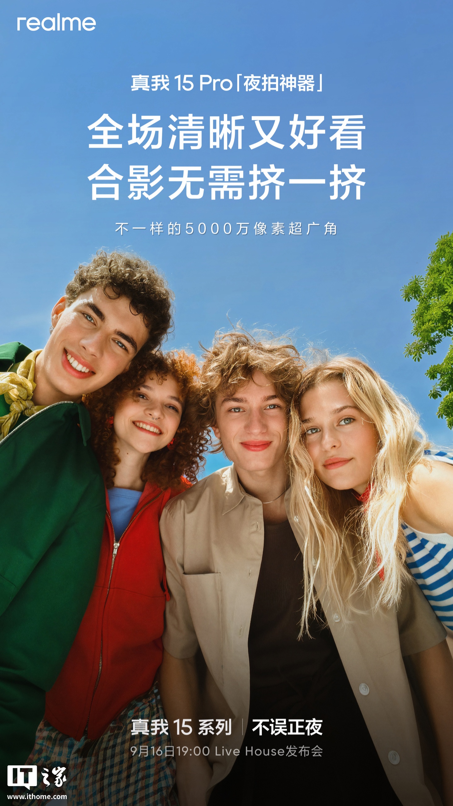 IT之家 9 月 10 日消息,realme 真我 15 系列手机已定档 9 月 16 日 19 点正式发布。