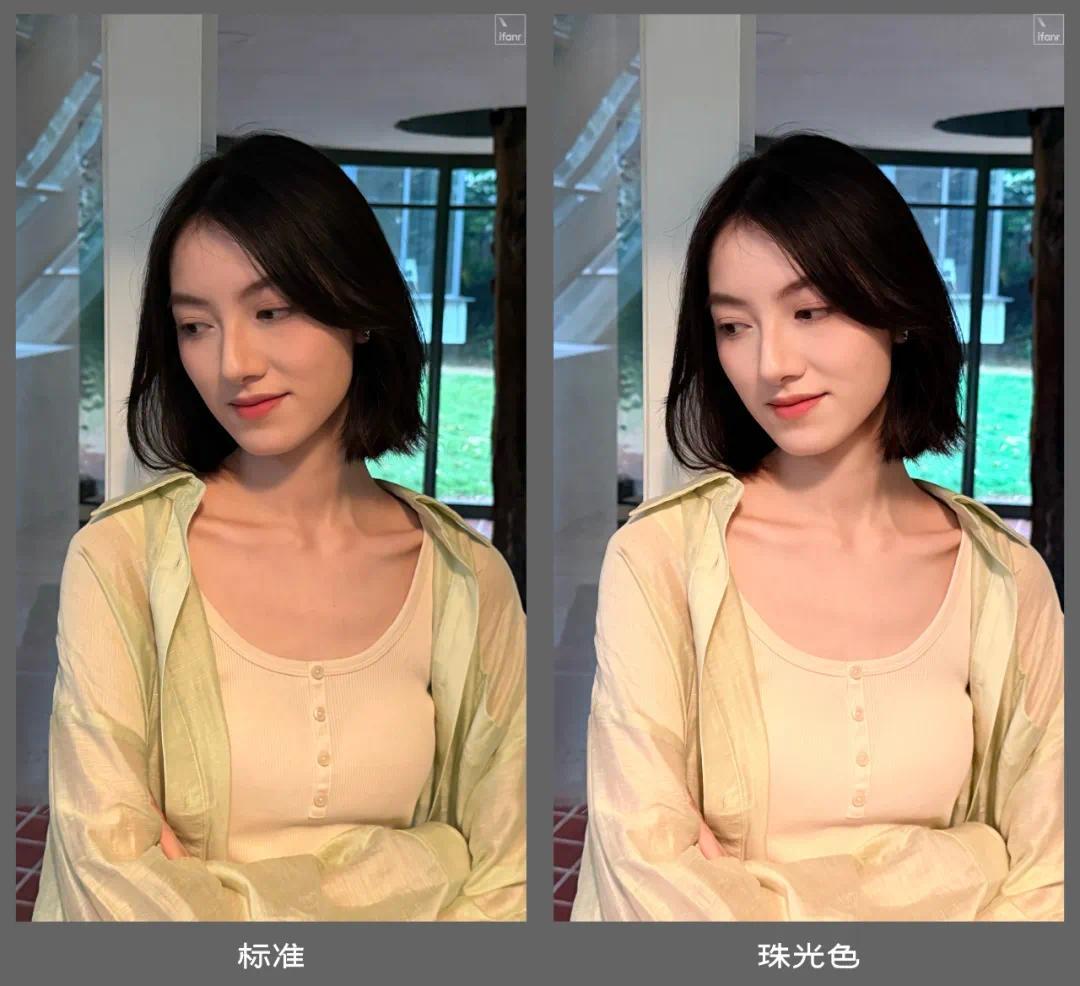 除了硬件升级,苹果还给原相机 app 加上了一款新的摄影风格「珠光」(Bright)。