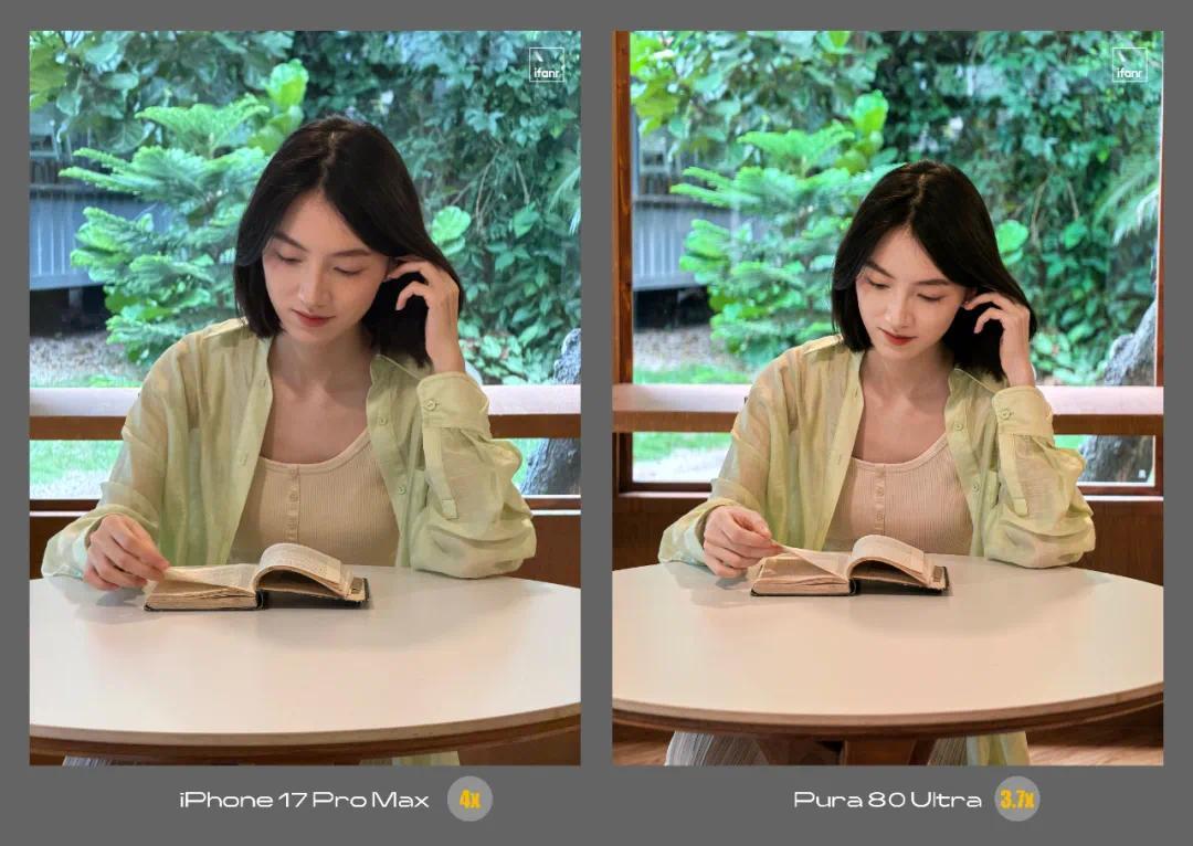 这套大底长焦的配置,也是许多国产影像旗舰手机采纳的方案——其带来的直接优势,就是 iPhone 17 Pro 调用长焦的频率相比 16 Pro 有了明显提升。