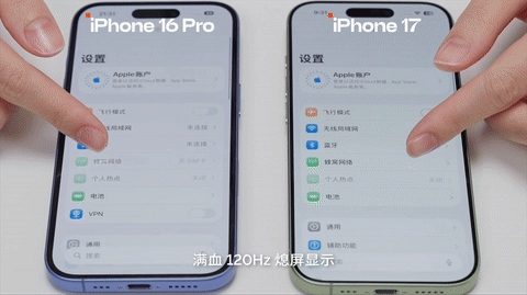 ▲左为 iPhone 17,右为 iPhone 16