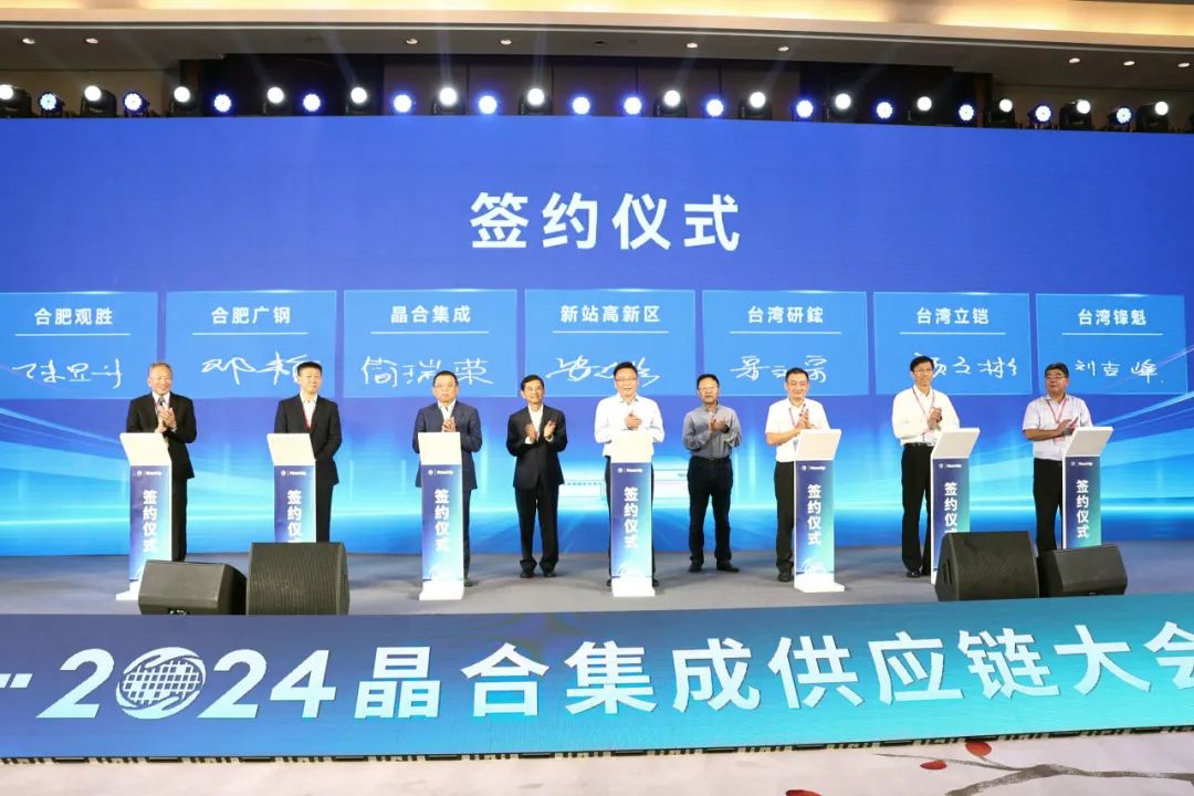 活动现场,新站高新区与3家供应链企业签订投资合作协议,晶合集成与2家供应链企业签订业务合作协议,政企、企业之间良性互动,开启“链上招商”新篇章。