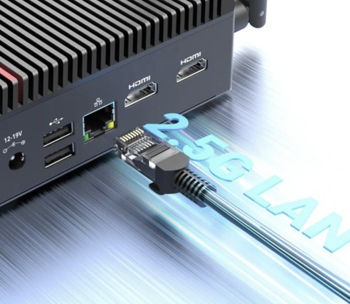 外观方面,这款迷你主机风格酷似路由器,其配备两根增益天线,拥有大面积散热鳍片,支持 Wi-Fi 7 无线和蓝牙 5.2,但IT之家注意到该机仅配备 1 个 2.5G RJ45 网口。