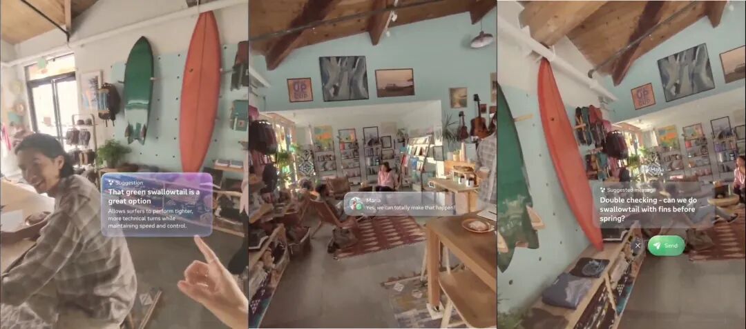 Meta 的 CTO Bosworth 强调:清晰的文字渲染是让AI变得有用的关键——如果 AI 只能语音回复,你获得的信息就有限。而当你提问后它能直接显示答案,这样不仅更直观,也更私密。