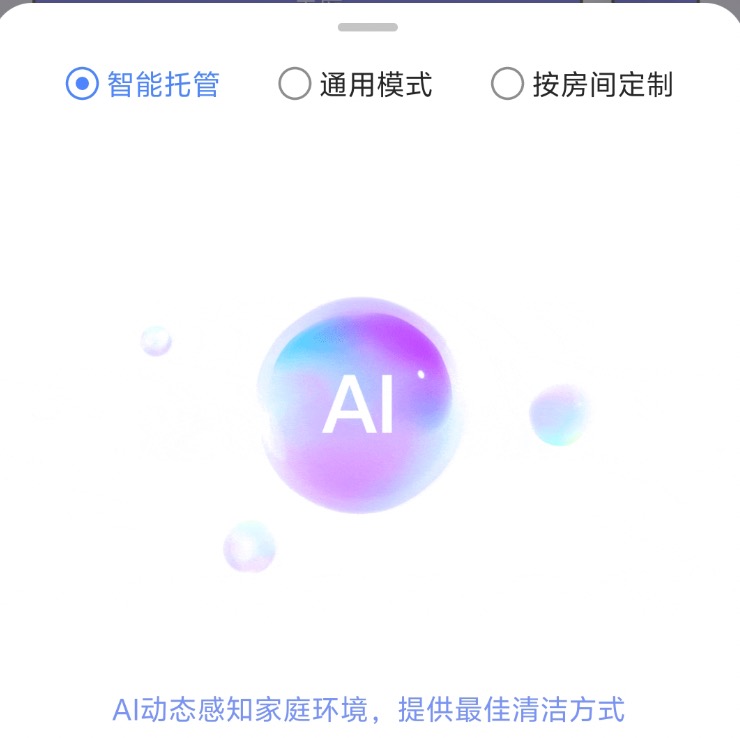 当然,有了 AI 的加持,萤石 RS20 Pro Ultra 还支持 AI 智能托管模式,你无需设置繁琐的清洁参数,一键即可开启全屋智能清洁,他还能智能识别房间类型、家具、地面材质,结合中国家庭用户的清洁习惯及地面脏污程度,自动匹配清洁方案,不断学习家庭地面环境,实现自我进化。