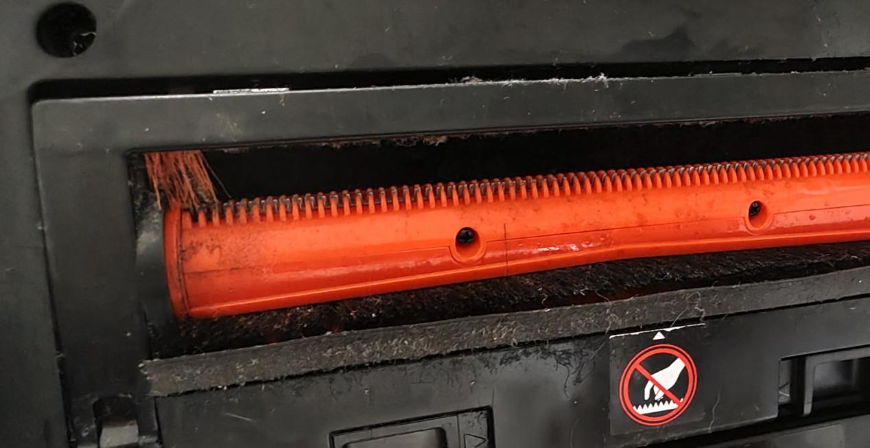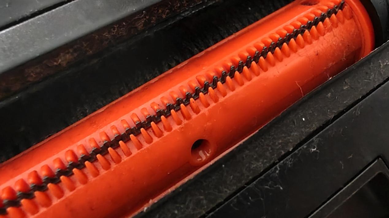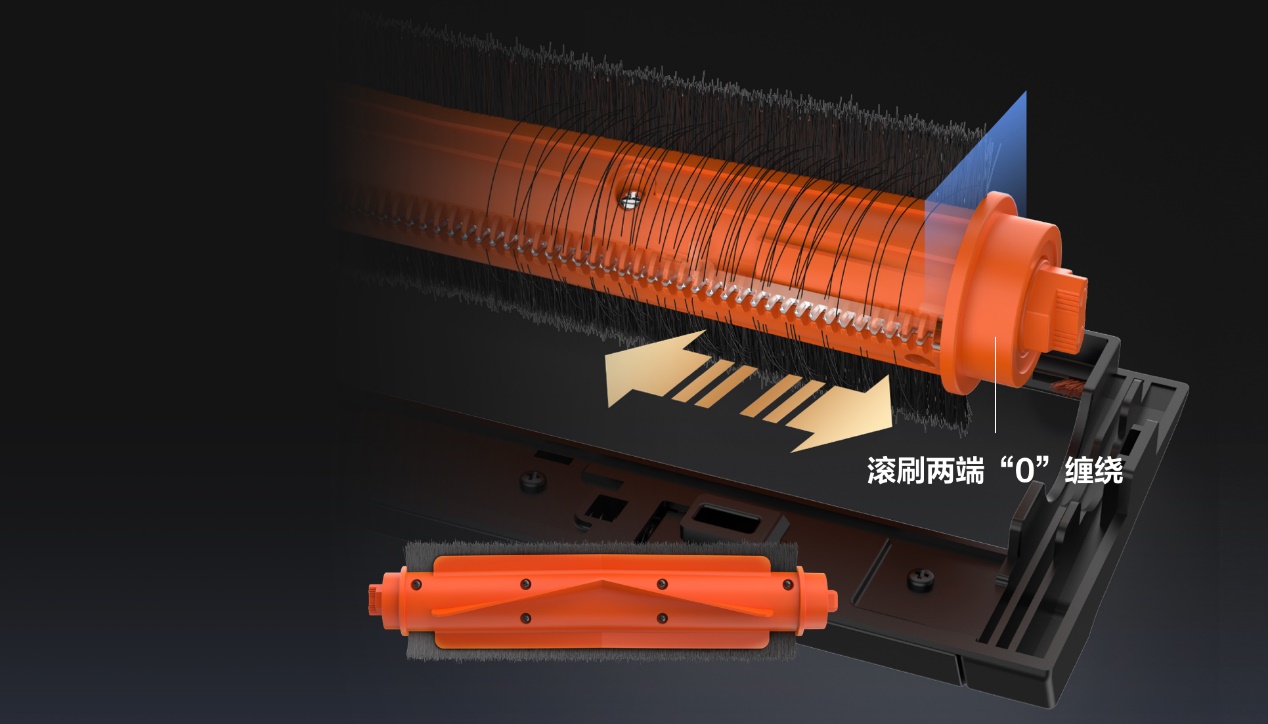 在清扫方面,首先要说的就是很多人在使用扫拖机器人时都可能遇到的一个头疼问题:毛发缠绕。扫地机使用久了,滚刷的两端往往就会缠绕头发,家里有宠物的情况更麻烦,宠物毛发不仅缠绕在两端,一些短毛还可能吸附在刷毛上,很影响清扫的效果。