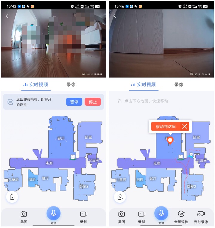 或者点击右上角的地图,点击某个房间后,萤石 RS20 Pro Ultra 就会自动取巡查该房间。