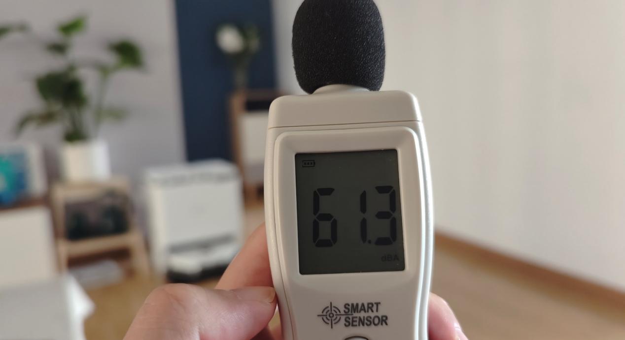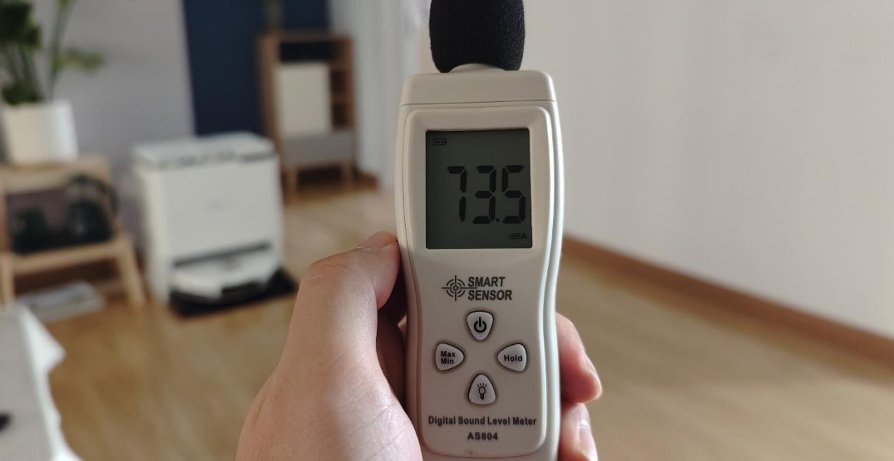 在清洁拖布时,基站的工作声音比较小,小编在客厅沙发上距离基站大约两米的距离,测得工作声音为 61.3dBA,滚刷自清洁工作的声音为 61.8dBA,集尘时声音较大,为 73.5dBA,不过集尘一次大约只需 15 秒左右的时间,并不是持续的噪音,因此也不用担心扰人。