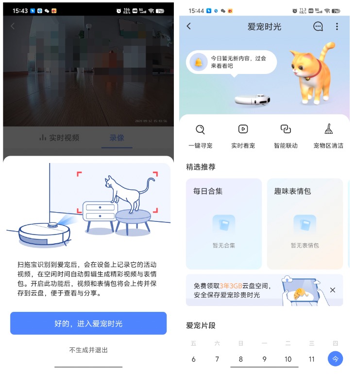 不仅如此,萤石 RS20 Pro Ultra 还可以识别家里的宠物,并拍摄宠物的精彩瞬间,你还可以通过实时视频看家观看宠物在家的状况,或者专门清扫宠物区域等。