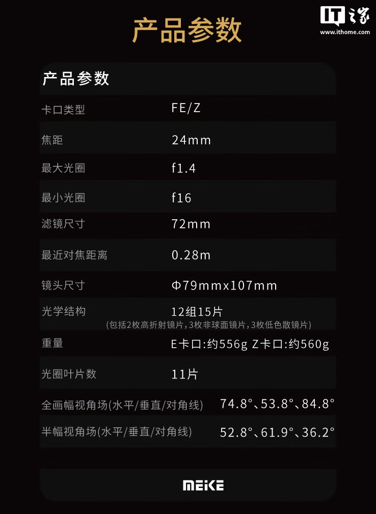 IT之家 9 月 23 日消息,美科现已在京东上架 24mm F1.4 MIX 全画幅镜头,提供索尼 E 和尼康 Z 卡口,定价为 3099 元。