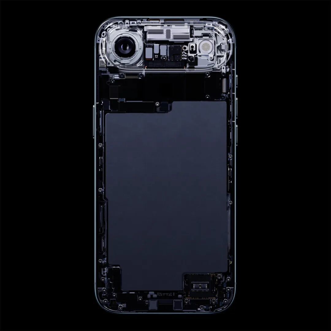 但苹果没有选择传统的「全局压缩」,而是反其道而行之——把占用高度的关键部件,比如 A19 Pro 芯片、电源管理、电声系统、相机模组等,集中安置到背部 Deco 的空间里。这样一来,机身的中下部分就腾出来,得以完整铺设一块面积更大、能量密度更高的电池。