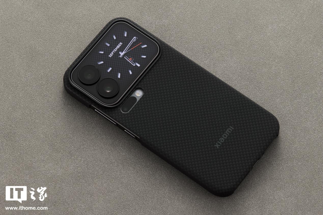 同时IT之家还收到配套的小米龙鳞纤维磁吸保护壳,表面拥有交叉网格纹路,手感细腻,并且戴上后妙享背屏会变成时钟功能。