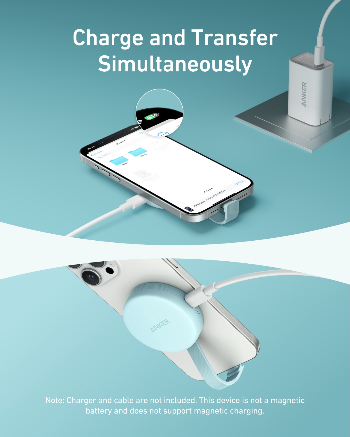 由于这款读卡器同时占据了 iPhone 的 USB Type-C 接口与 MagSafe 无线充电位,因此安克为 A83D1 配备了供电直通功能:其侧面拥有一个支持 PD 的充电专用 USB Type-C 接口,最大输出功率 42.5W。
