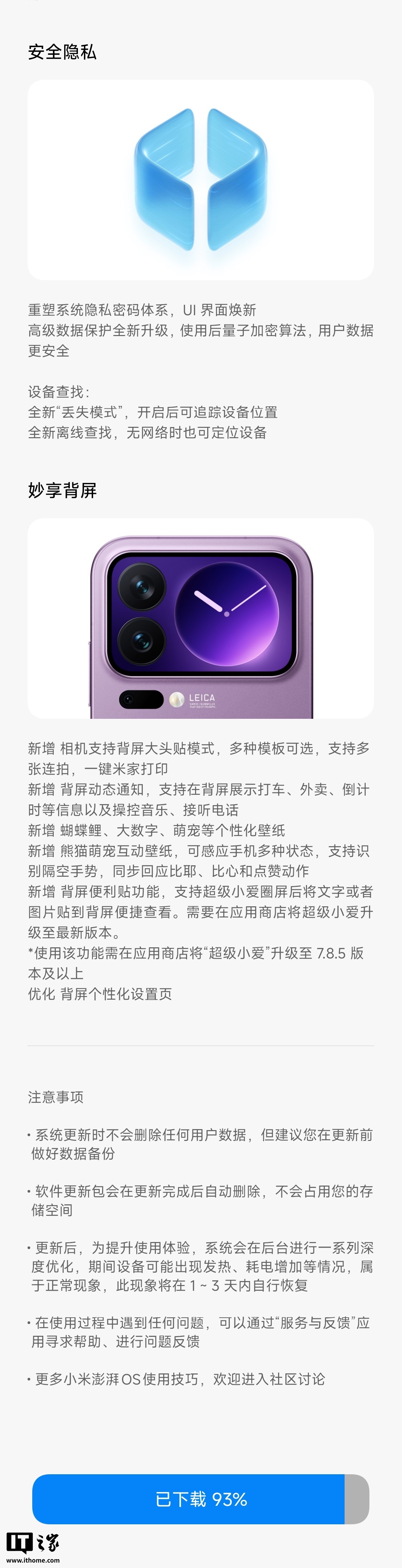 IT之家 9 月 27 日消息,小米 17 / Pro / Max 系列手机今天上午 10:00 正式开售,定价为 4499 元起。据IT之家网友反馈,小米 17 Pro Max 机型到手即推送澎湃 OS 3.0.9.0.WPBCNXM 版本升级,安装包体积为 607MB。