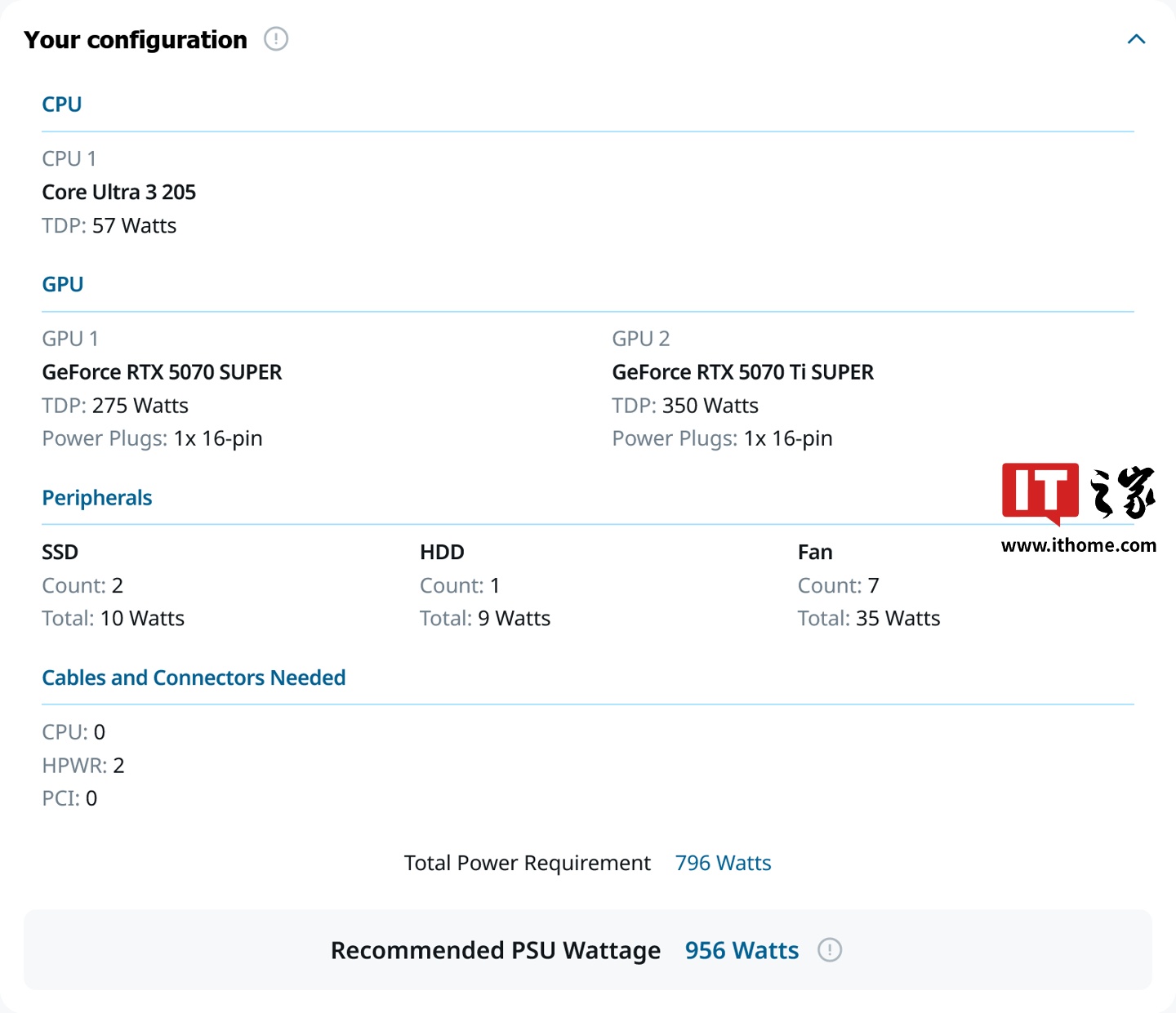 该电源功率计算器认为 RTX 5070 SUPER 的 TDP 为 275W、RTX 5070 Ti SUPER 的 TDP 为 350W,这与此前有关这两张显卡的爆料一致。