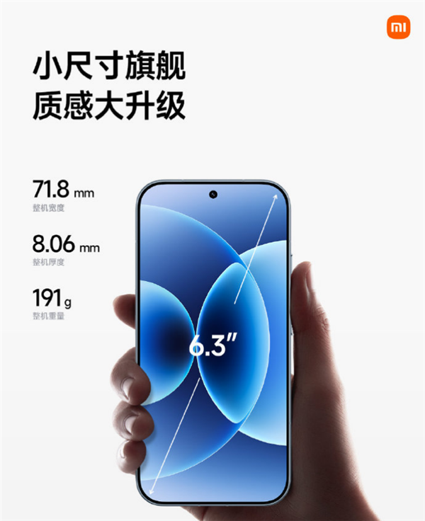 小米17标准版这次正面搭载6.3吋的直屏,采用M10新型红色发光主材,可达到3500nits多场景峰值亮度,并且拥有大R角设计和四曲面包裹式中框,整体宽度为71.8mm,整机厚度为8.06mm,整机重量为191g。
