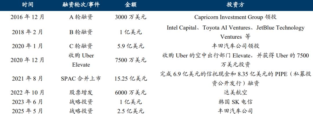 2021 年, Joby 通过与 SPAC 合并在纽交所成功上市,为后续发展提供了雄厚的资本支持。
