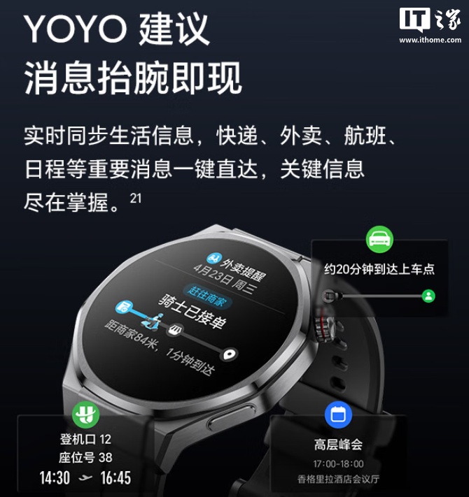 IT之家 9 月 30 日消息,荣耀 GT 系列产品经理 @汤达人TF 今日在微博分享了荣耀手表 5 Pro 真机图,并展示了该手表类似华为“弦月窗”的值机提醒功能,预计是“YOYO 建议”功能的升级版(荣耀手表系列产品支持 YOYO 建议功能,可实时同步生活信息,含快递、外卖、航班等)。
