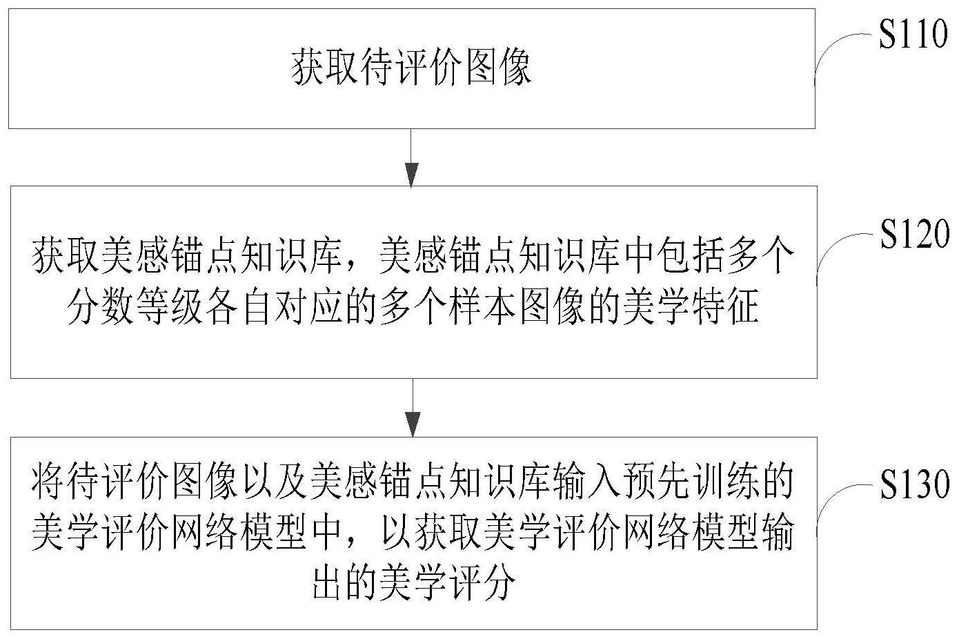本申请实施例公开了一种图像评价方法、装置以及电子设备。方法包括:获取待评价图像;获取美感锚点知识库,美感锚点知识库中包括多个分数等级各自对应的多个样本图像的美学特征,多个分数等级为基于多个样本图像各自的多个美学评分得到,其中,每个样本图像对应的多个美学评分包括多个评价者输出的评分;将待评价图像以及美感锚点知识库输入预先训练的美学评价网络模型中,以获取美学评价网络模型输出的美学评分。从而使得美学评价网络模型在借助于美感锚点知识库对待评价图像进行美学评分的过程中,可以同时参考不同分数等级的美学特征,以便可以同时参考不同分数等级的大众化美学评价经验,从而使得所输出的美学评分更加全面且准确。