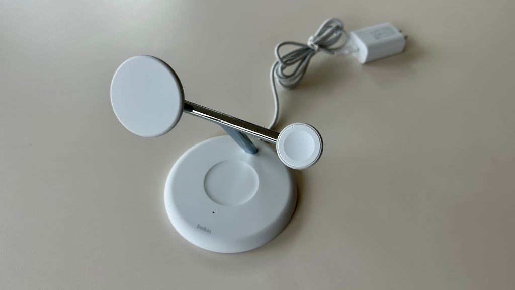 贝尔金Boost Charge Pro三合一Qi2充电器。David Carnoy/CNET