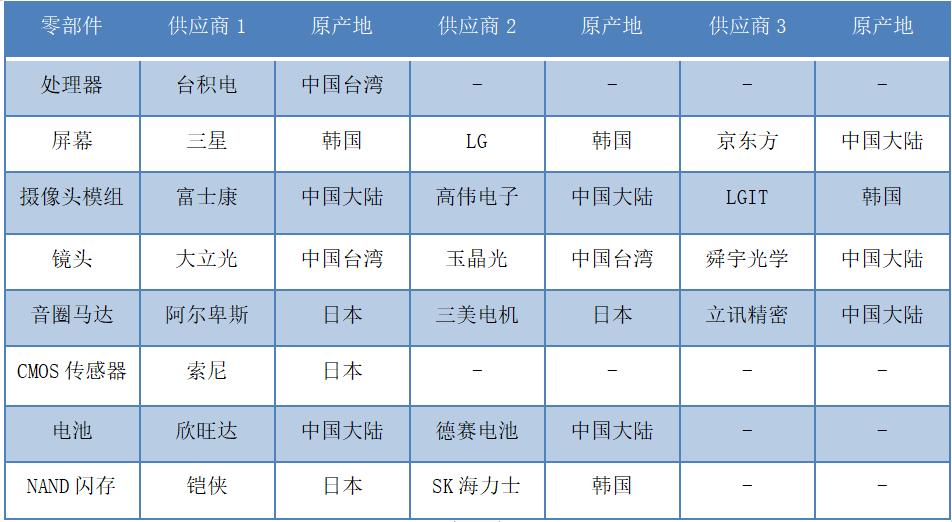 图:iPhone核心零部件供应商情况;资料来源:公开资料;36氪