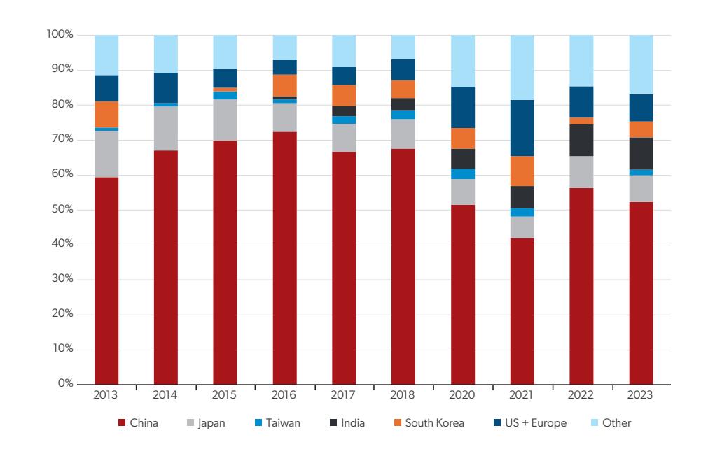 对此,卢克林的观点进一步印证了这一逻辑,在他看来“二级市场目前把印度作为估值‘缓冲垫’,只要印度增速大于25%,某种程度上能抵消部分地区下滑带来的PE下杀,给股价20-25倍区间托底。”