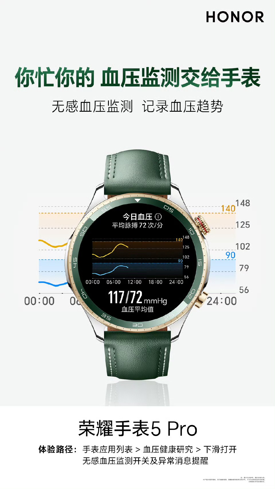 IT之家 10 月 10 日消息,荣耀今天继续预热自家新品荣耀手表 5 Pro,揭晓了该表的一项主打功能:血压监测,号称血压健康“一表掌控”。